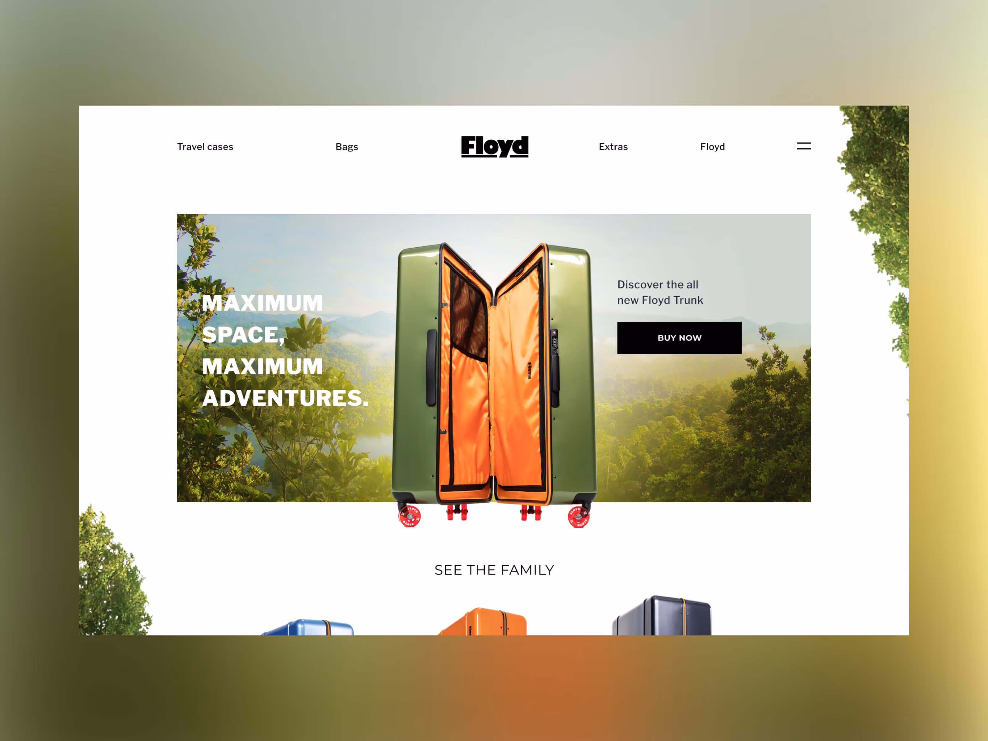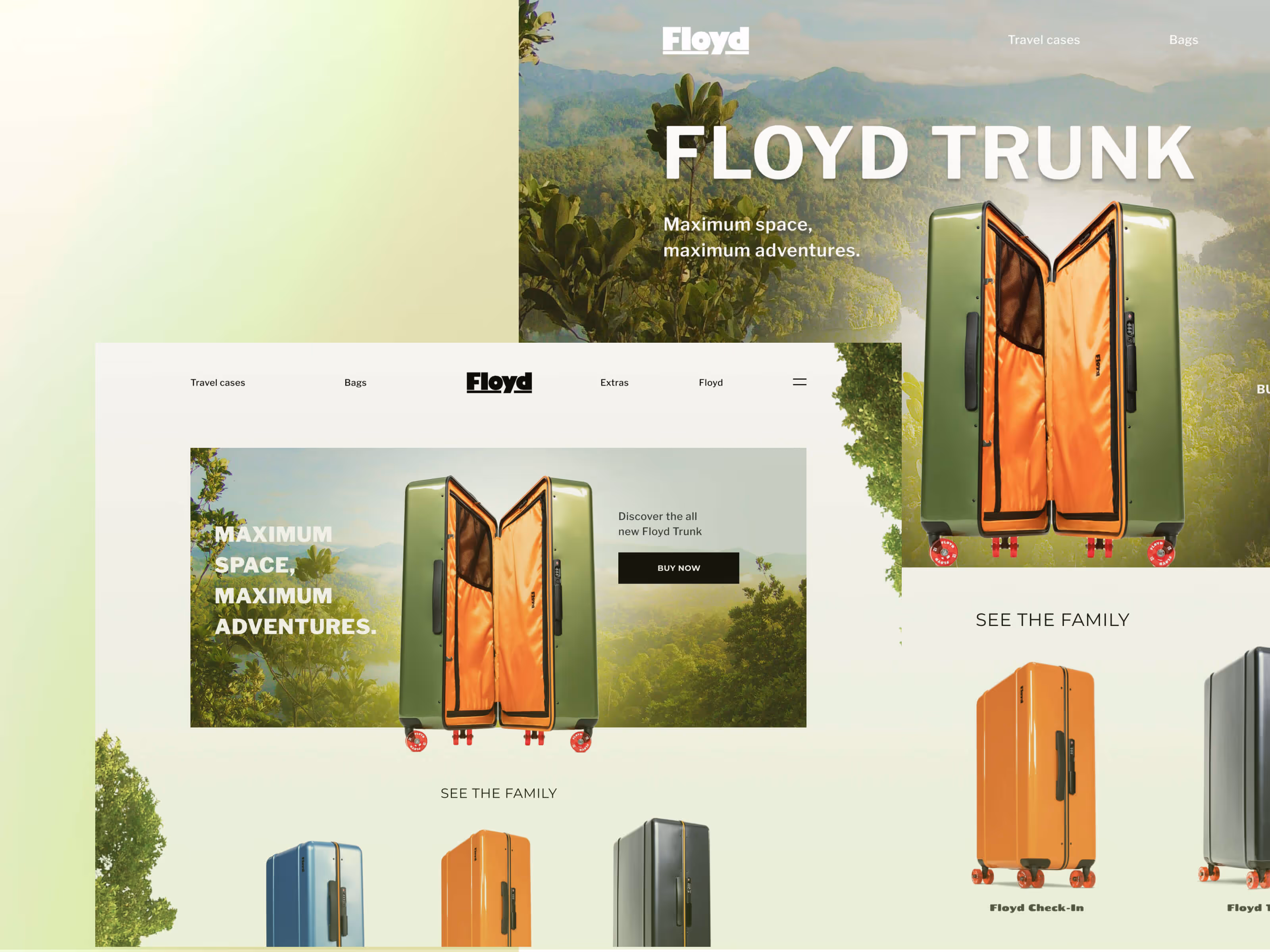 A concept redesign for Floyd suitcases replacing a visually interesting but journey-less homepage with an experience-driven design that sparks adventure.