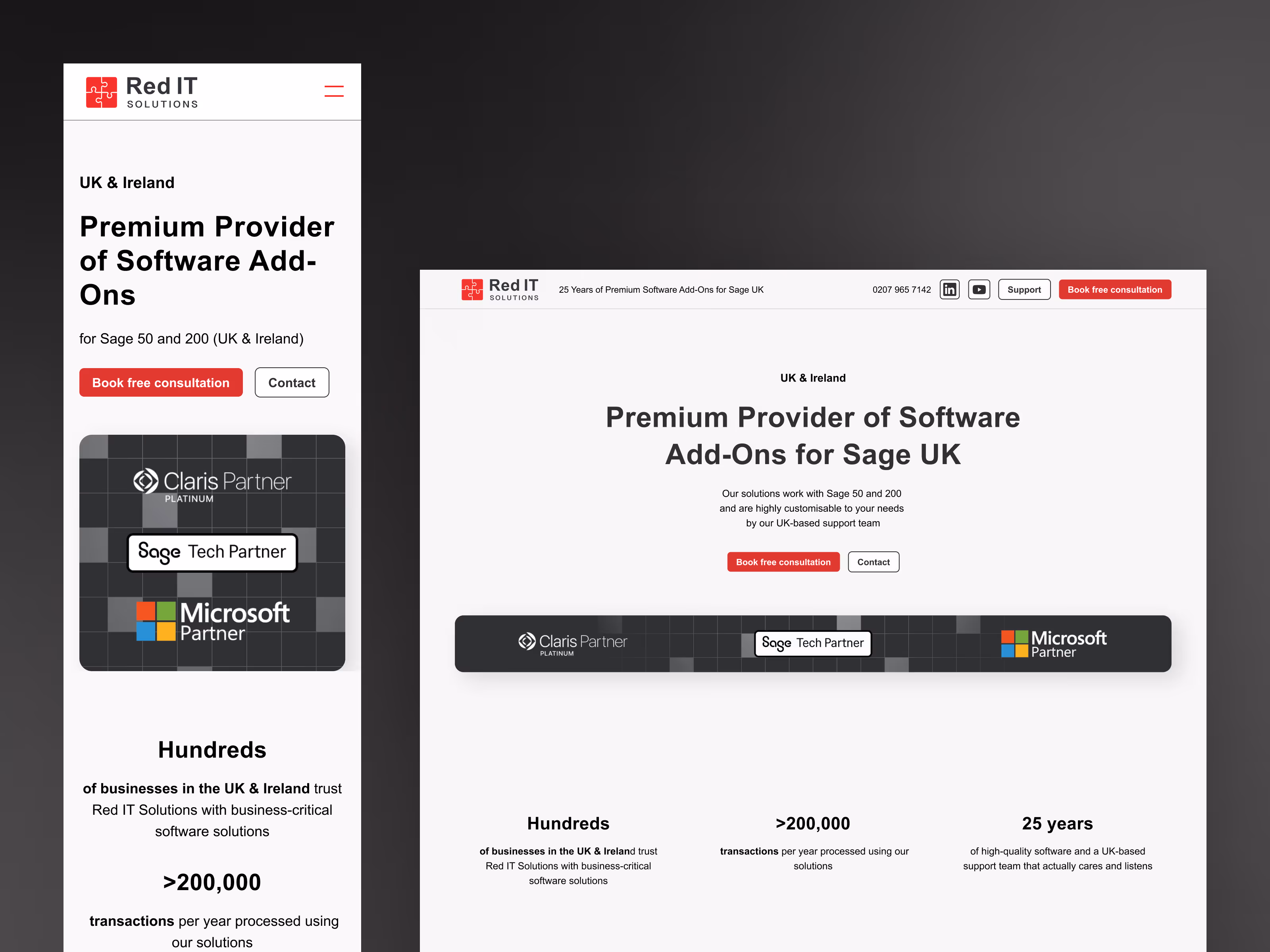 25 years of building Sage UK add-ons, but the website wasn't reflecting that track record. We redesigned it to lead with the numbers, partnerships, and credibility their clients actually look for.